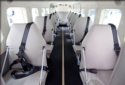 Cessna Grand Caravan en Pisco, vista de la cabina de pasajeros