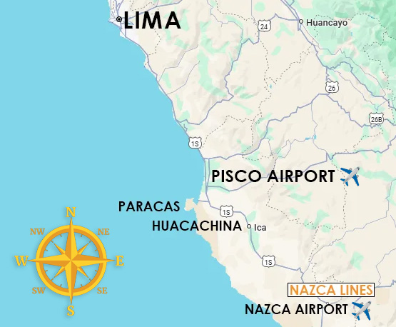 There are no commercial flights from Lima to Nazca; to see the Nazca Lines you must travel by land to a regional airport like Pisco Airport or Nazca Airport. Our private tours from Lima include flights from both of these ‘gateways’ to the Nazca Lines.