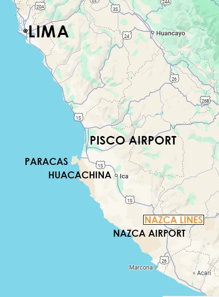 When our clients add the dune buggy tour to this tour package, we will schedule the Nazca Lines flight from the airport in Ica, which is just a few minutes away from the oasis where your dune buggy tour begins.
